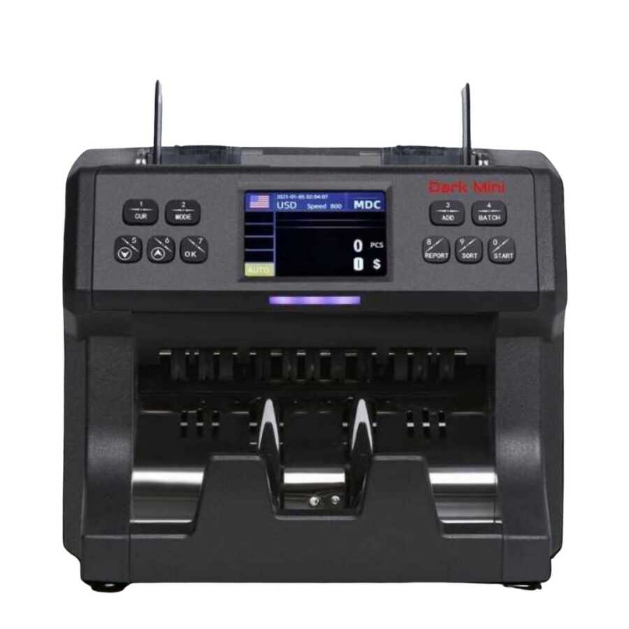 Dark Mini Tek Katlı Para Sayma Makinesi, kompakt boyutu, geniş hafıza kapasitesi, sahte para algılama teknolojisi ve detaylı raporlama özelliği ile her işletmenin ihtiyaçlarına uygun, güvenilir bir çözümdür.