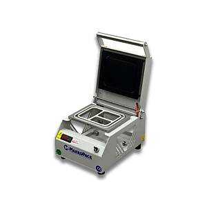 Standart olarak tek bölmeli kalıp ile üretilen cihaz, isteğe bağlı olarak 2, 3, 4 ve 6 bölmeli tabaklarla da uyumlu çalışır. Böylece farklı porsiyonlu ürünlerin aynı anda güvenli bir şekilde paketlenmesine olanak tanır.