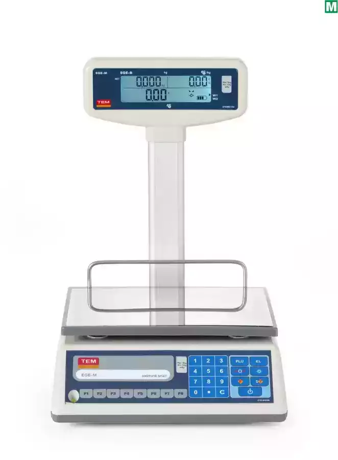 Tem Ege Serisi Boyunlu Fiyat Hesaplamalı Terazi, yüksek kapasitesi, hassas ölçüm gücü, uzun akü ömrü ve geniş hafızası ile işletmeler için profesyonel bir çözümdür.