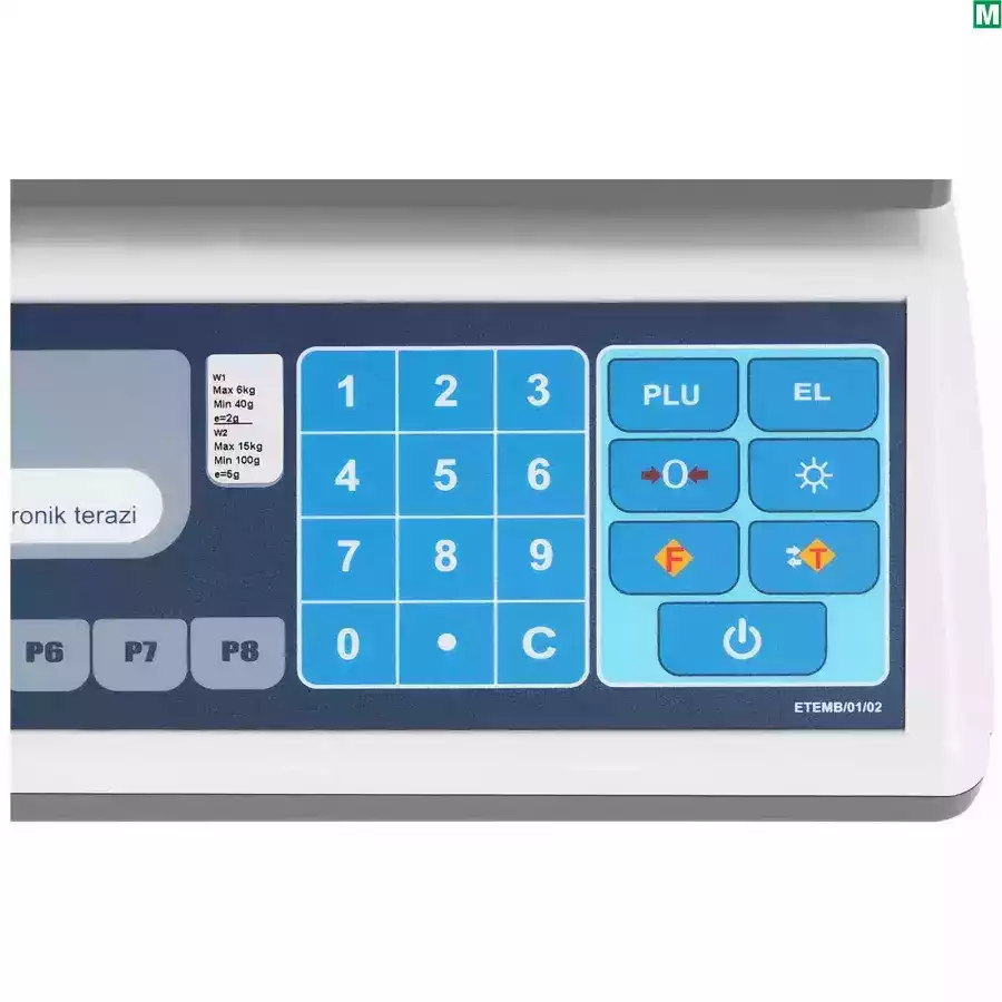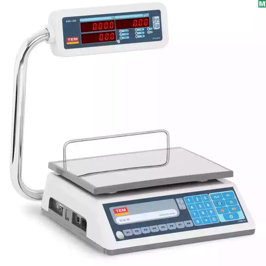 Tem Ege Serisi fiyat hesaplamalı terazi, katlanır boyunlu tasarımı, uzun akü ömrü, geniş hafızası ve M onaylı mühürlü yapısı ile ticari işletmeler için güvenilir bir çözümdür. Hem küçük hem de büyük kapasiteli tartımlar için hassas ölçüm yapabilen bu cihaz; market, manav, kasap, şarküteri ve pazaryerlerinde yoğun kullanım için idealdir.