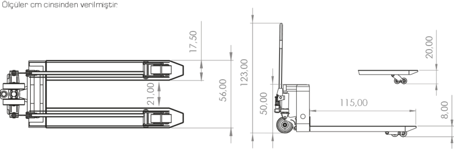 56x115 cm 2 Ton Transpalet, işletmelerin ağır yükleri güvenle ve kolayca taşımasına olanak tanır. 2000 kg (2 ton) taşıma kapasitesi ile depo, lojistik ve üretim alanlarında maksimum verimlilik sunar.